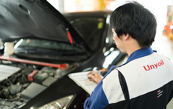 説明してから行う車検です。ユニーオイルの車検では本当に必要な整備・メンテナンスしか行いません。お車の状態をしっかりとご説明した上で、整備に必要な金額を提示して、お客様のご了承をいただいてから実施する「立会い車検」です。